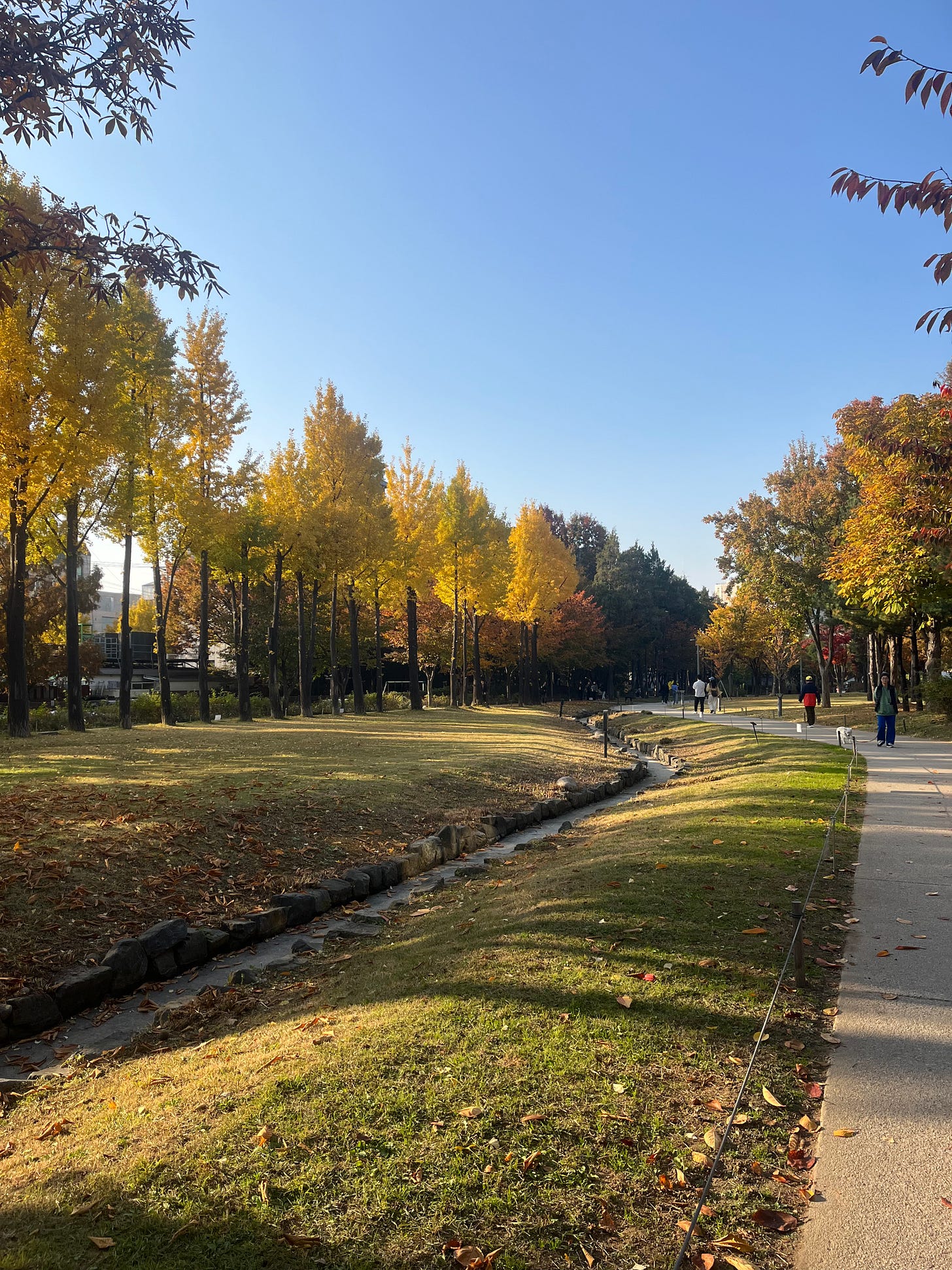 But eldest-daughter autopilot doesn’t shut off just because you’ve done the work. A few weeks ago, I was traveling solo in Seoul, PMSing, exhausted from decision fatigue, and spiraling in my hotel room. I texted my parents who said: “Have you gone to see Hongdae yet?” One line. That’s all it took. I ended up Yeontral Park with this gorgeous line of freshly turned yellow gingko trees.